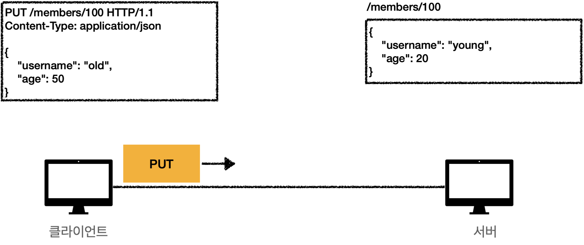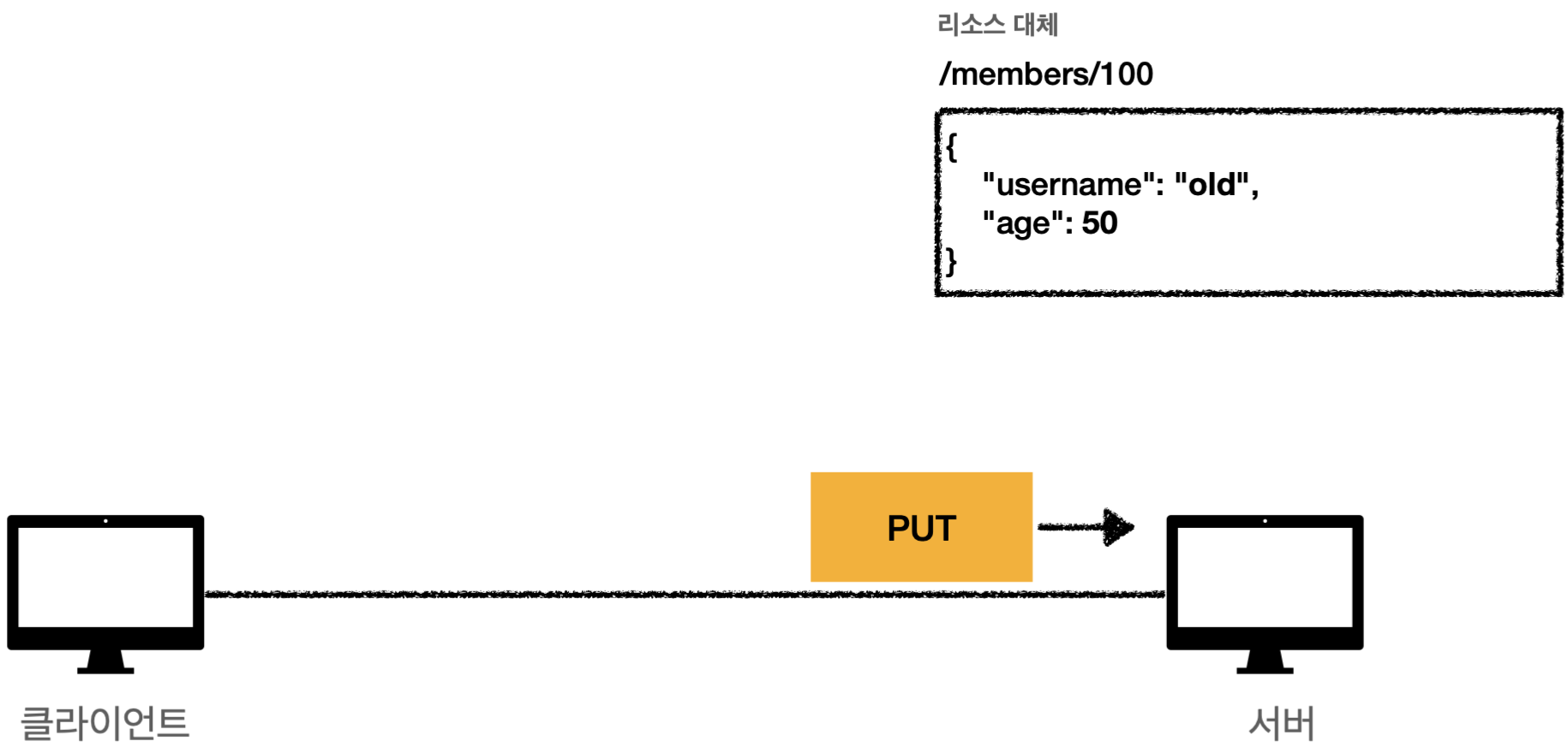 중요한 것은 구체적인 리소스 경로를 다 알고 있어 클라이언트가 리소스를 식별한다는 것이다. 이것이 POST와의 큰 차이점이다.