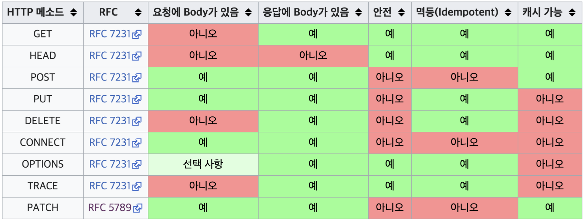 HTTP 메서드 속성에는 다음 3가지가 있다.