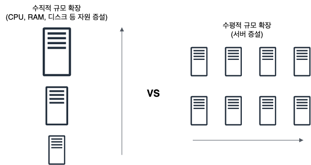 - λ°μ΄ν°λ² μ΄μ€ μλ² νλμ¨μ΄μλ νκ³κ° μμΌλ―λ‘ CPU, RAM λ±μ 무ν μ¦μ€ν μλ μλ€. μ¬μ©μκ° κ³μ λμ΄λλ©΄ ν λ μλ²λ‘λ κ²°κ΅ κ°λΉνκΈ° μ΄λ ΅κ² λ κ²μ΄λ€.