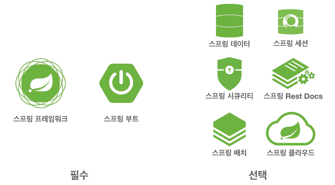 위의 그림을 살펴보면, 먼저 스프링의 가장 핵심이 되는 스프링 프레임워크, 여러 스프링 기술들을 편리하게 사용할 수 있도록 도와주는 스프링 부트는 스프링의 필수적인 요소이다.