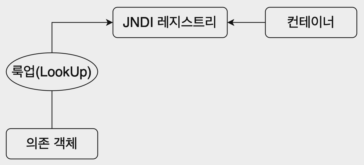 아래 그림은 JNDI 룩업을 통한 의존성 풀 룩업 메커니즘을 사용하는 시나리오입니다.