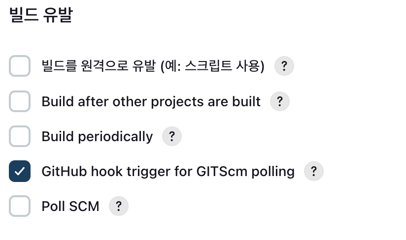 다음으로 빌드 유발 탭에서 아래와 같이 체크합니다.