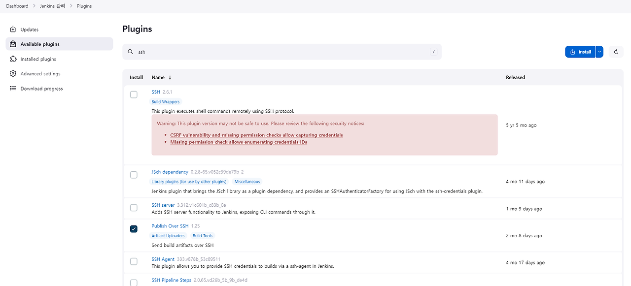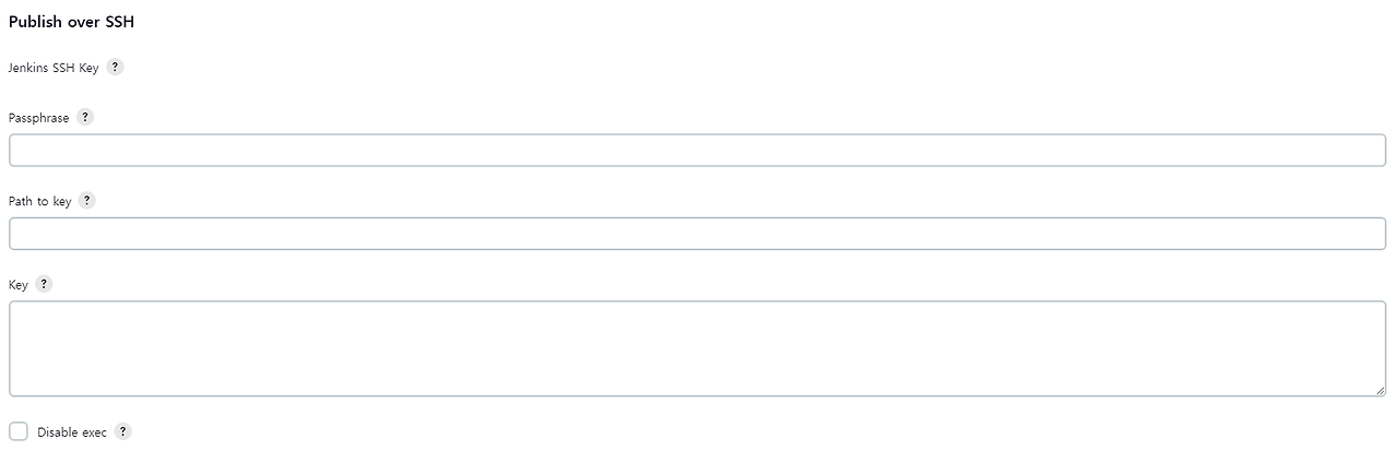 jenkins server 연동 Publish over SSH jenkins서버에서 id_rsa 키값 발급받아서 키 넣어두고 ( 발급 방법 구글에 찾아보자 ) ssh Server설정 위 내용 추가 remote서버 root에서 ~/.ssh/authorized_keys 에 id_rsa.pub 키 등록