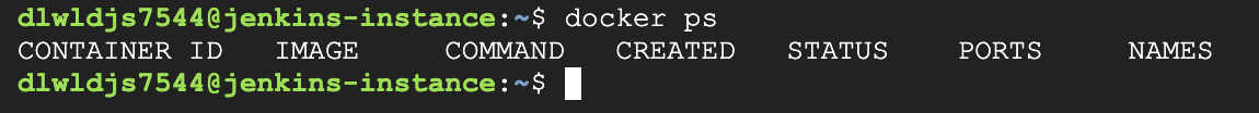 재접속 후, `docker ps` 명령어를 사용하면 다음과 같은 결과가 나올 것입니다.