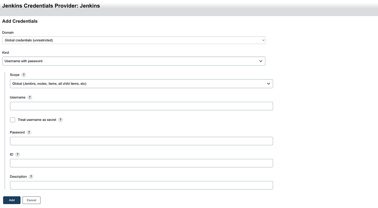 아래의 Add를 클릭하고 Jenkins를 선택하면 다음과 같은 창이 뜹니다.
