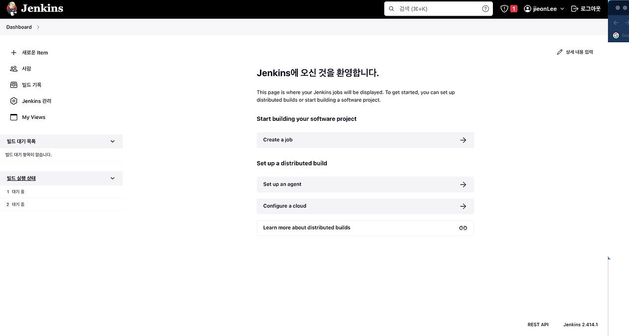여기까지 Jenkins를 설치하고 접속까지 완료했습니다.