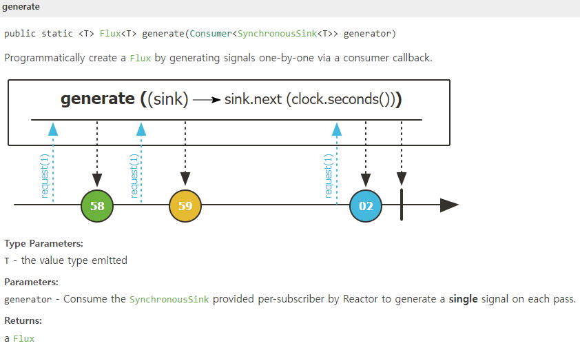 하지만, Reactor에서 프로그래밍 방식으로 Signal을 전송하는 가장 일반적인 방법은 `generate()`나 `create()` 와 같은 Operator를 사용하는 것인데, 이는 Reactor에서 Sinks를 지원하기 전부터 이미 사용하던 방식입니다.