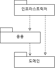 응용, 도메인 영역이 DB나 외부 시스템 연동을 위해 인프라스트럭처의 기능을 사용하므로, 위의 구조는 직관적으로 이해하기 쉽습니다. 하지만, 이 경우