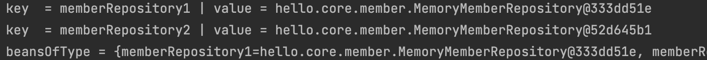 Map<String, MemberRepository> beansOfType = ac.getBeansOfType(MemberRepository.class);