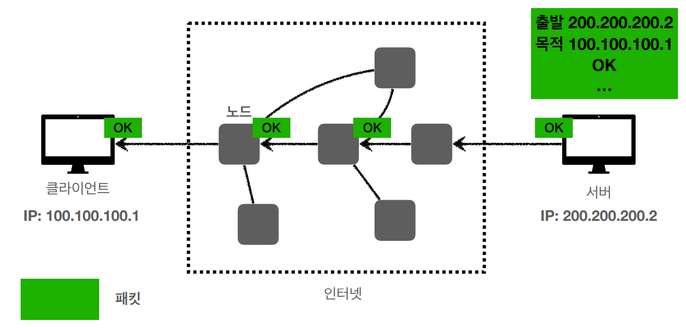 클라이언트는 출발지 주소를 가지고 해당하는 목적지 주소를 향해 패킷을 전달한다.