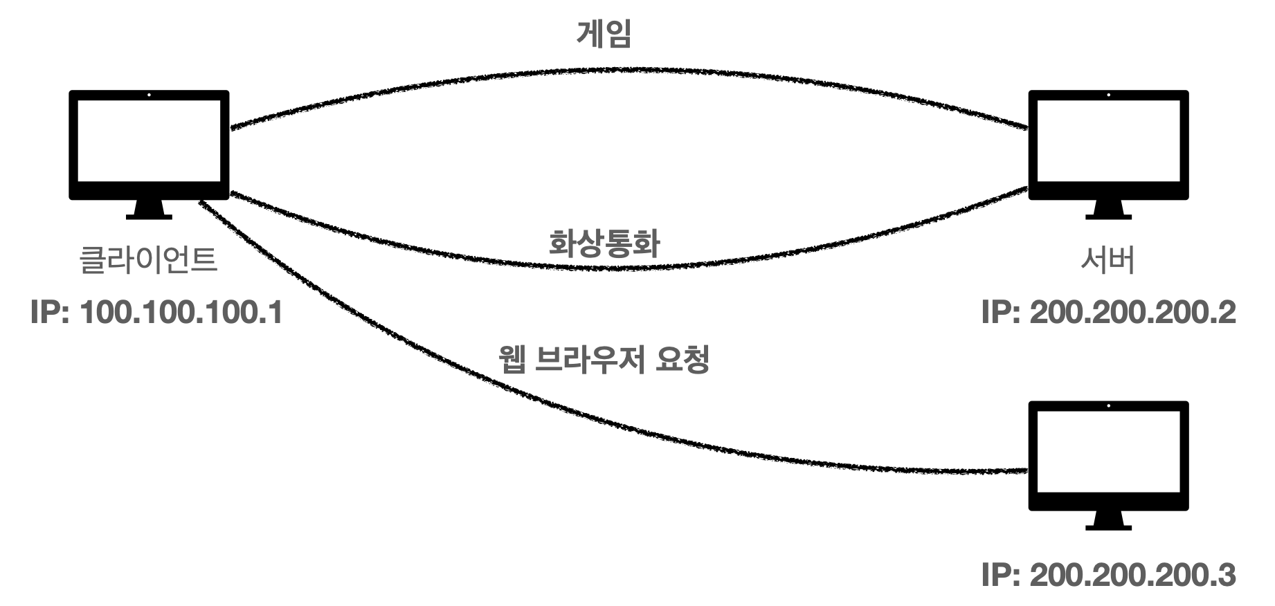 위와 같은 상황에서 클라이언트는 한 번에 여러 서버와의 통신이 필요하다. 그럼 이때 날아오는 여러 패킷을 어떻게 구분할까?