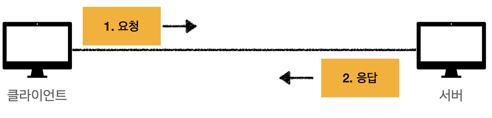HTTP는 클라이언트-서버 구조로 이루어져 있다. 클라이언트가 HTTP 메시지를 통해 서버에 요청(Request)을 보내고 서버에서 응답이 올 때까지 기다린다. 서버가 요청에 대한 결과를 만들어 응답(Response)을 보내면 클라이언트는 이를 받아 동작을 수행하게 된다.